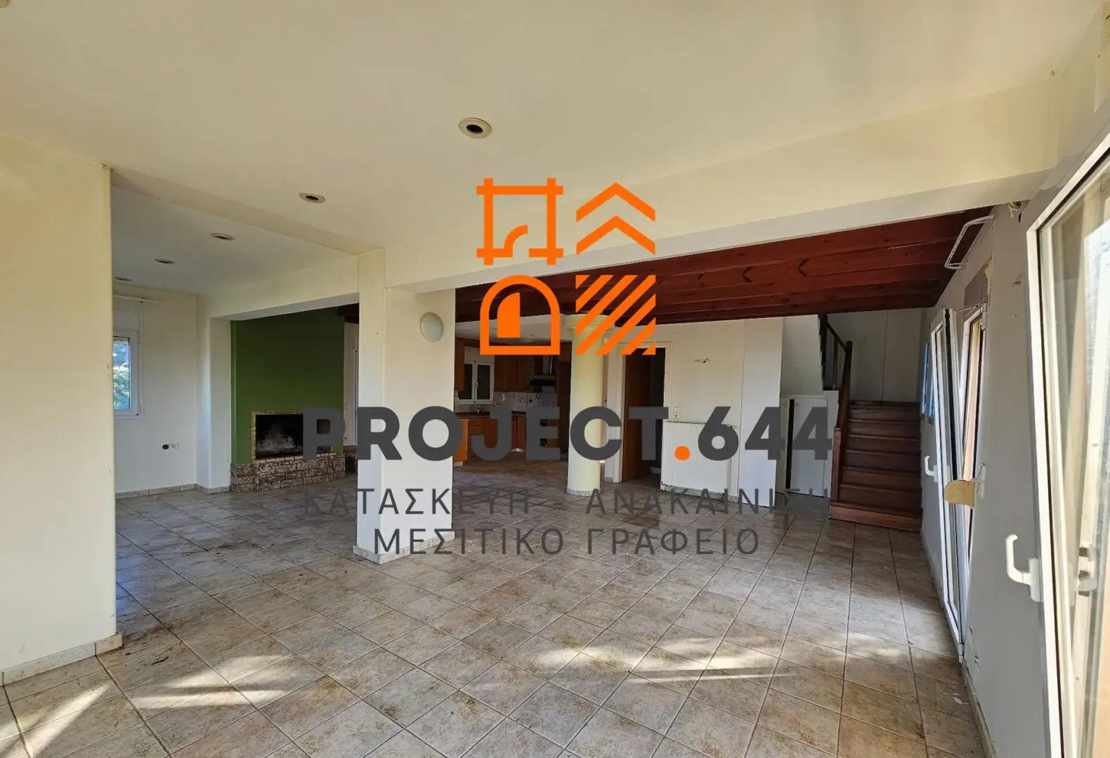 Ισόγειο (80 τ.μ.): Φωτεινός, ενιαίος χώρος καθιστικού και κουζίνας με τζάκι για ζεστασιά και ατμόσφαιρα, καθώς και ένα άνετο μπάνιο.